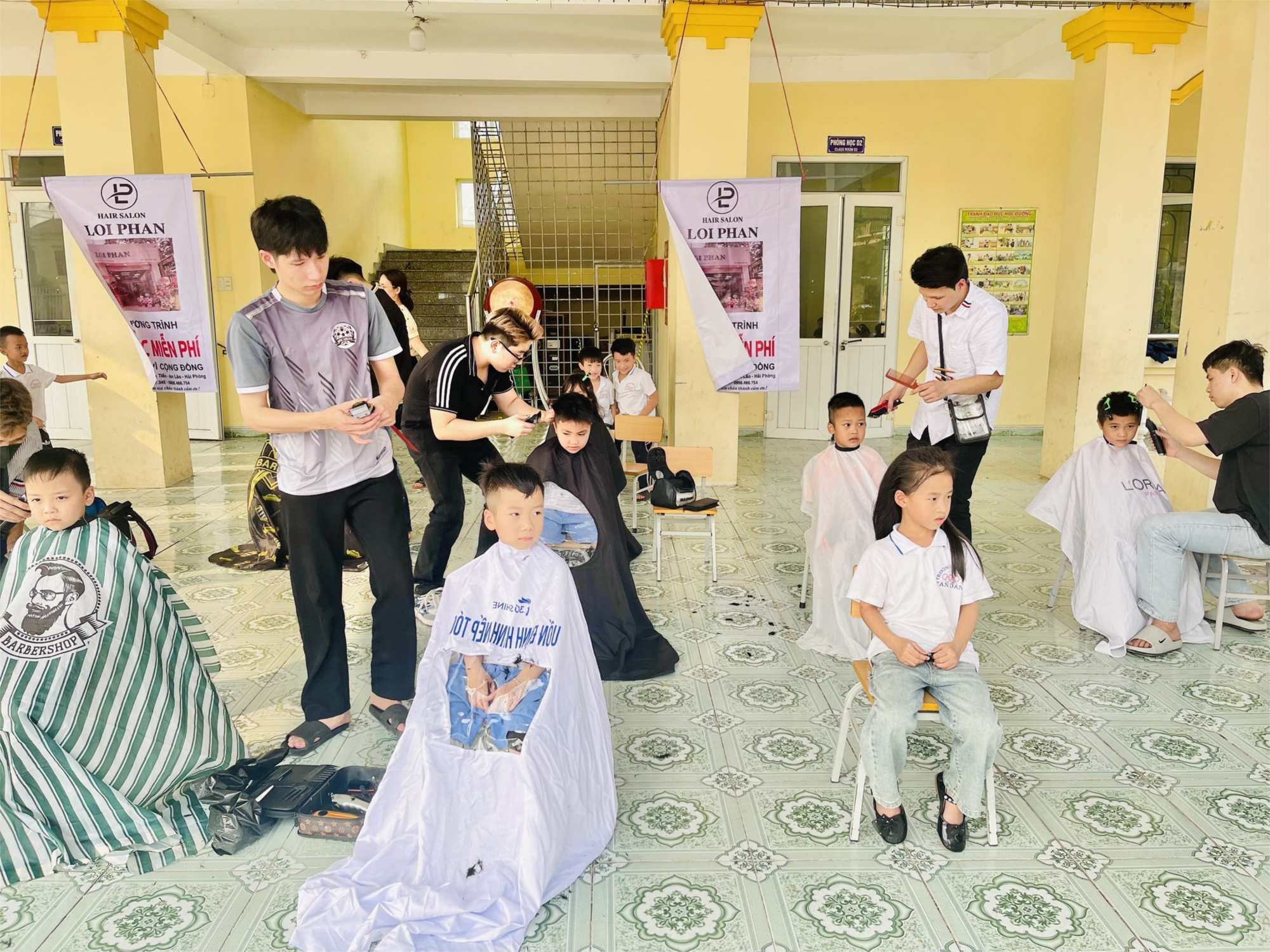 Chiều ngày 3,4 tháng 4 năm 2024 Tiệm tóc Loi Phan Hair Studio đến cắt tóc miễn phí cho các e học sinh và các thầy cô giáo trong nhà trường