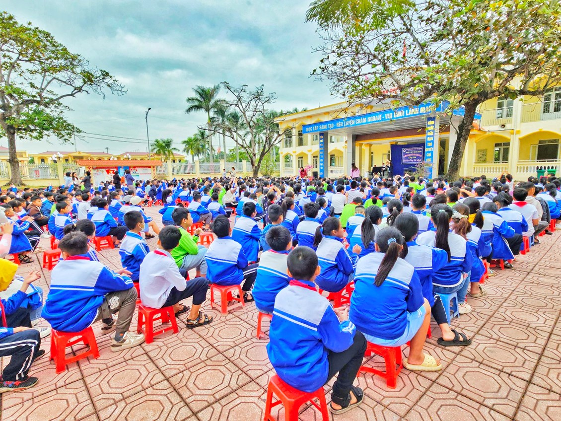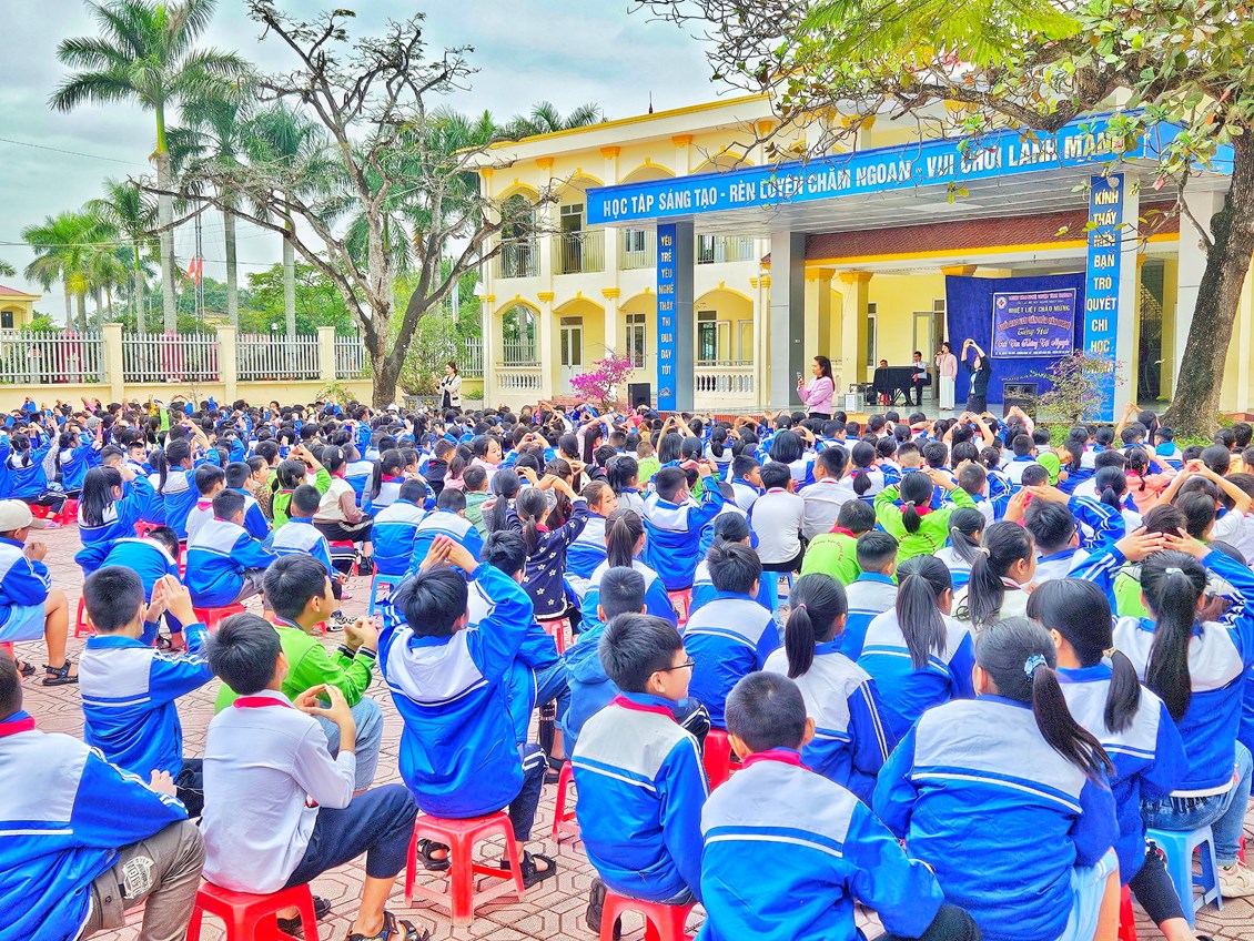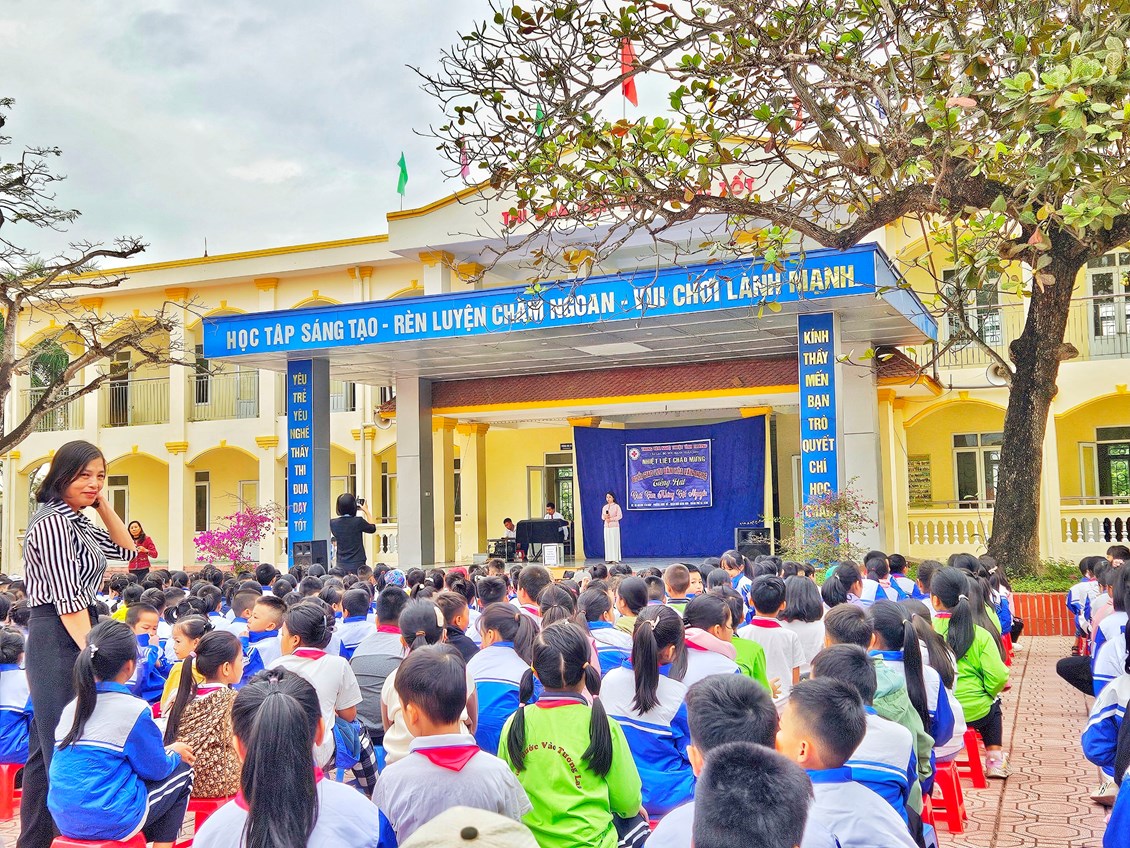 Đặc biệt trong buổi giao lưu với chuyên mục: “Mỗi tuần 1 câu chuyện đẹp, một cuốn sách hay, một tấm gương sáng” giáo viên và học sinh nhà trường được nghe anh Nguyễn Hữu Ất chàng sinh viên khiếm thị kể lại câu chuyện về chính anh. “Ngay từ khi mới sinh anh Nguyễn Hữu Ất đã không nhìn thấy gì, gia đình anh lại có hoàn cảnh rất khó khăn nhưng không vì những khiếm khuyết trên cơ thể, không vì hoàn cảnh gia đình nghèo túng, anh đã vươn lên để trở thành học sinh giỏi trong suốt những năm học phổ thông và thi đỗ vào trường đại học Công nghiệp Hà Nội khoa Quản trị kinh doanh. Anh đã tốt nghiệp thủ khoa đại học và nhận được học bổng của một trường Đại học tại Hàn Quốc. Và anh cũng chia sẻ là vừa rồi anh đã nhận tấm bằng thạc sĩ. Không những thế trong buổi giao lưu anh còn cho mọi người thấy khả năng chơi đàn rất tuyệt vời của mình. Các tiết mục của các thành viên trong đoàn và các tiết mục giao lưu của giáo viên và học sinh trong trường đều được anh đệm đàn rất ấn tượng”