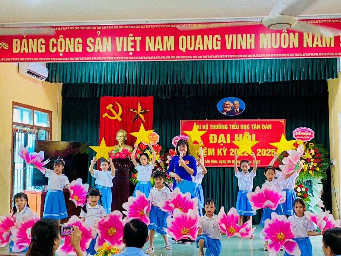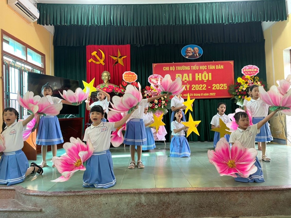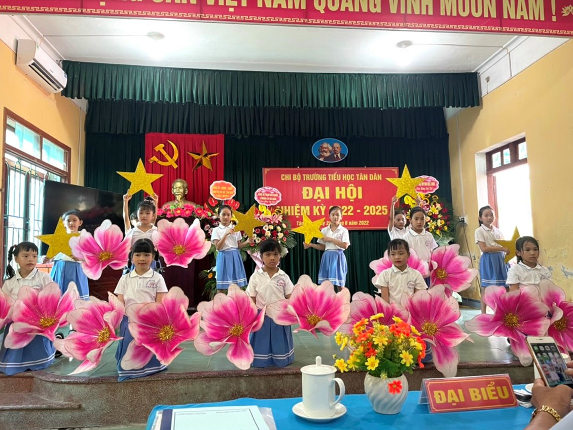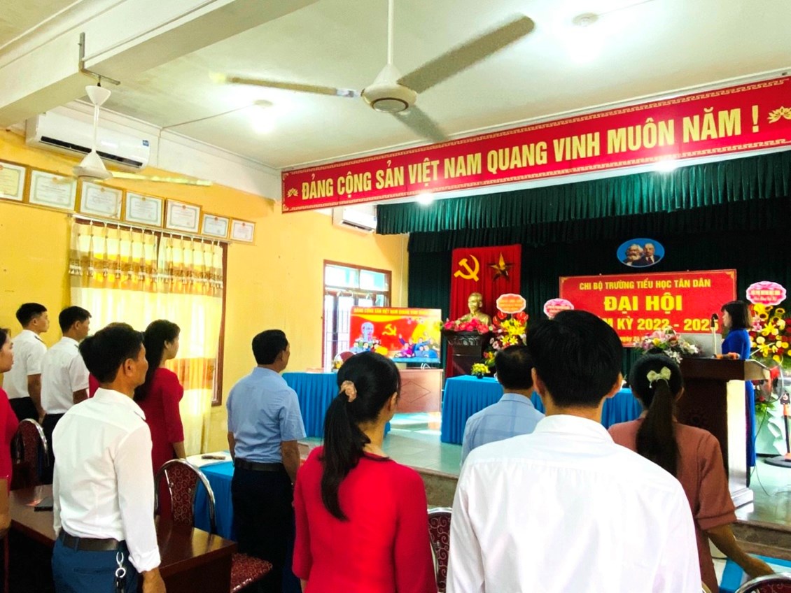Thực hiện Kế hoạch số 04-KH/ĐU ngày 02/6/2022 của Đảng uỷ xã Tân Dân về kế hoạch tổ chức Đại hội nhiệm kỳ 2022-2025. Hôm nay, ngày 24/8/2022 chi bộ trường Tiểu học Tân Dân long trọng tổ chức Đại hội chi bộ nhiệm kỳ 2022-2025. Đại hội đánh giá kết quả thực hiện Nghị quyết Đại hội nhiệm kỳ 2020-2022, đề ra phương hướng, nhiệm vụ, giải pháp nhiệm kỳ 2022-2025 và bầu Chi uỷ chi bộ, Bí thư, Phó Bí thư chi bộ nhiệm kỳ 2022-2025. Trân trọng cảm ơn các đồng chí lãnh đạo, các đồng chí trong đoàn công tác của BTV Đảng uỷ xã đã về dự và chỉ đạo ĐH, cảm ơn các đ/c chỉ huy trạm Điều khiển- Lữ đoàn 679 Hải Quân, đại diện CMHS đã đến dự và chúc mừng ĐH!