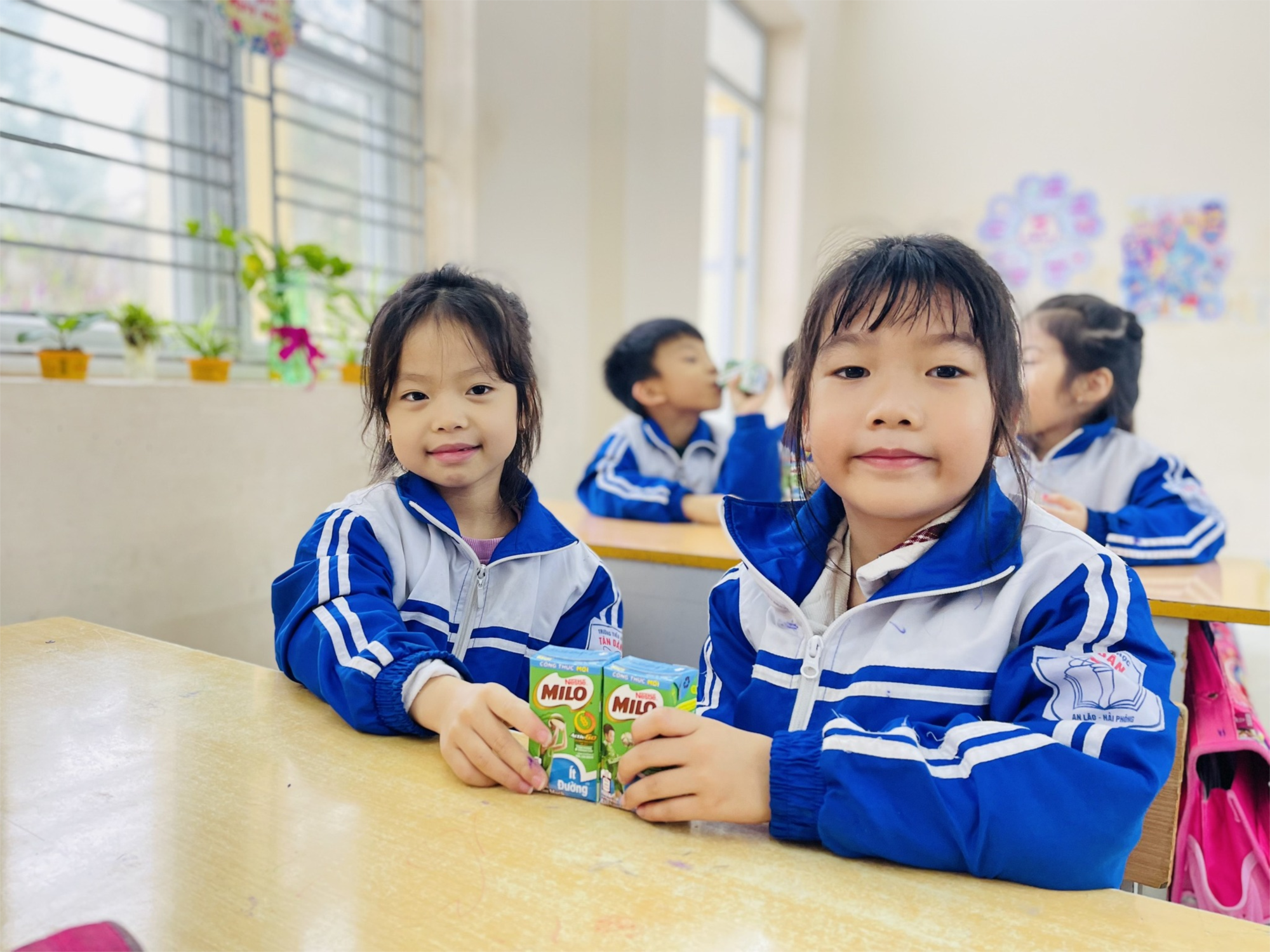 công ty sữa Milo Việt Nam đã đến và trao miễn phí sữa dinh dưỡng cho các em học sinh trường Tiểu học Tân Dân. Đây là một việc làm đầy ý nghĩa mang tính giáo dục cao. Các em học sinh rất hào hứng và vui khi nhận được những hộp sữa Nestlé thơm ngon và bổ dưỡng.