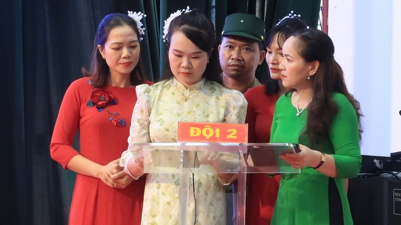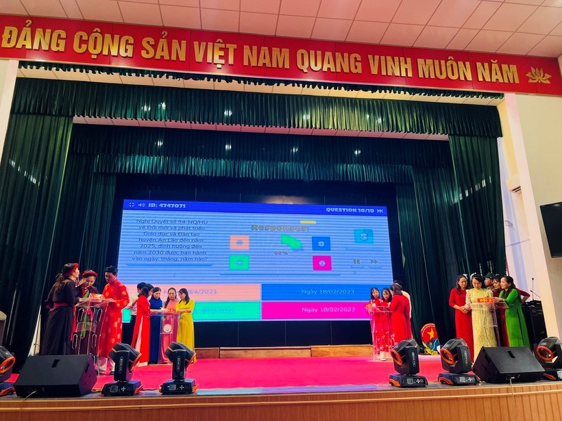 Các đội thi cùng thể hiện hiểu biết của mình qua phần trả lời 10 câu hỏi trắc nghiệm về truyền thống và thành tựu của Huyện An Lão sau 35 năm.