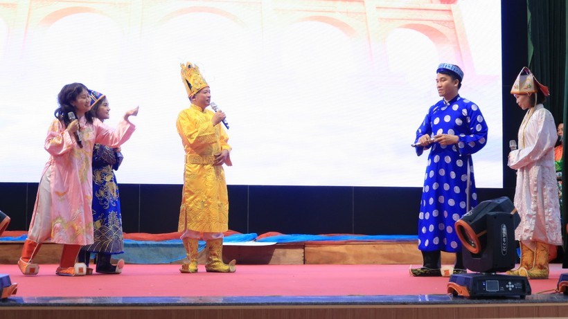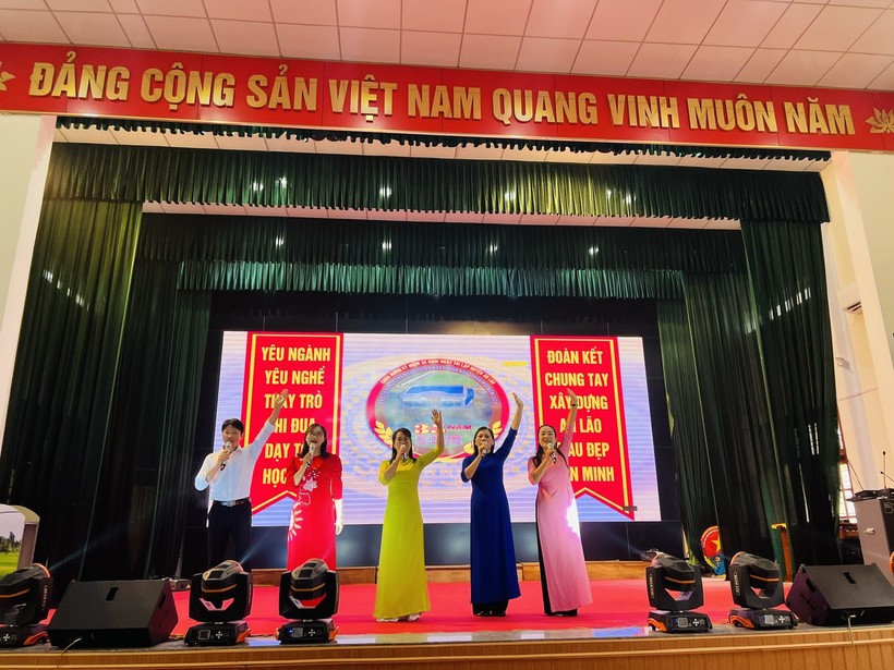 Phần thi tài năng thu hút sự tham gia của thầy cô giáo với các tiểu phẩm, hát, múa đặc sắc, hấp dẫn.