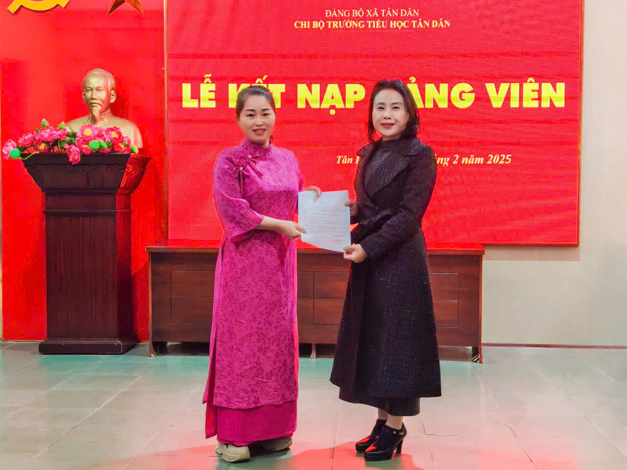 🇻🇳🇻🇳🇻🇳 Ngày 6 tháng 2 năm 2025, Chi bộ Trường Tiểu học Tân Dân long trọng tổ chức Lễ kết nạp Đảng viên mới cho quần chúng ưu tú Phạm Thị Tâm. Buổi lễ diễn ra trong không khí trang nghiêm, đúng trình tự theo quy định của Đảng Cộng sản Việt Nam.