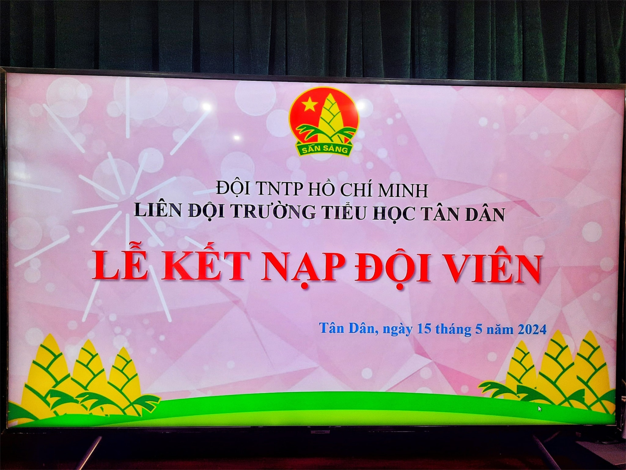 Các em nhi đồng đã cố gắng học tập thật tốt và tích cực tham gia các phong trào, hoạt động của nhà trường, các em đã học xong điều lệ Đội. Nhân kỉ niệm 83 năm ngày thành lập Đội TNTP Hồ Chí Minh (15/5/1941 - 15/5/2024). Xét nguyện vọng của các em nhi đồng tự nguyện xin vào Đội . Hôm nay, Ban chỉ huy liên đội trường Tiểu học Tân Dân. Tổ chức kết nạp đội viên mới cho các em nhi đồng vào Đội TNTP Hồ Chí Minh.