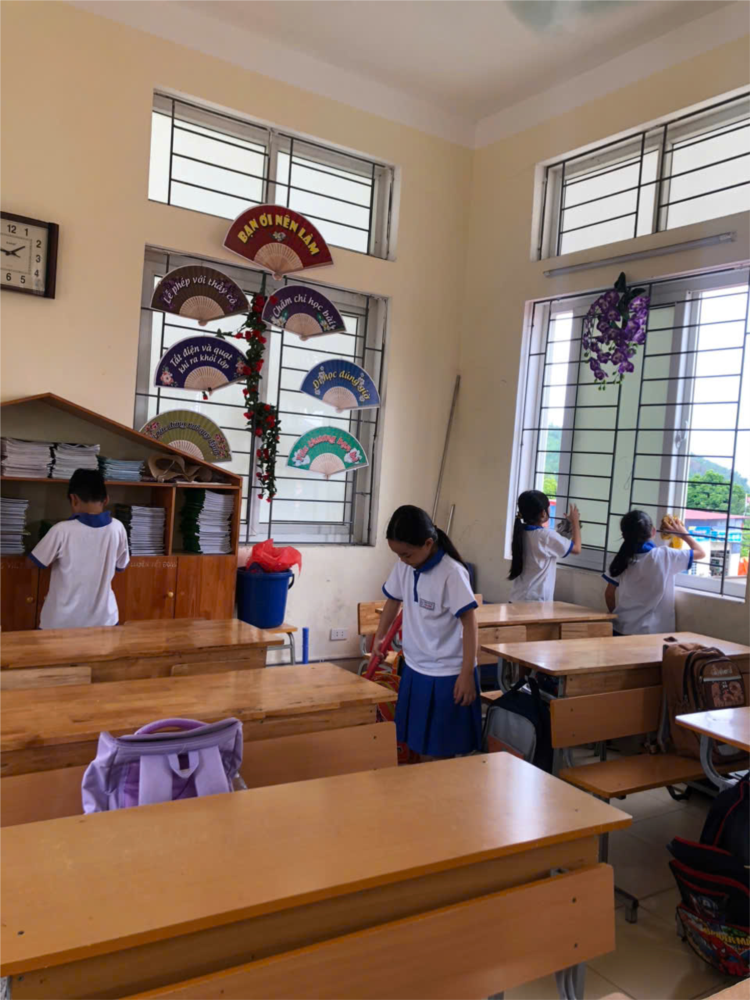 Hoạt động không chỉ giúp lớp học thêm khang trang mà còn rèn luyện ý thức giữ gìn môi trường học tập xanh – sạch – đẹp.