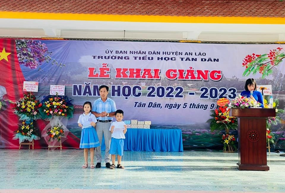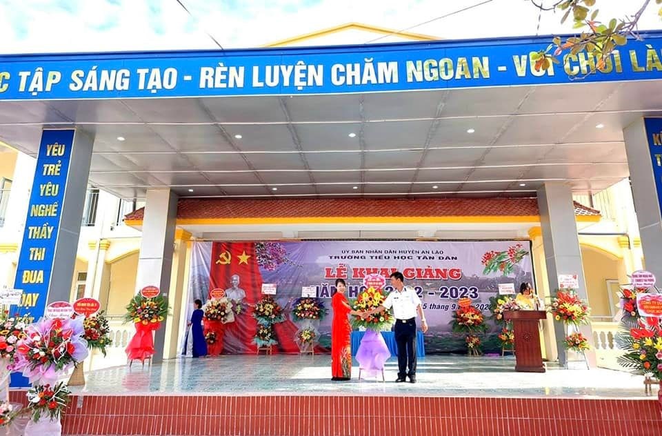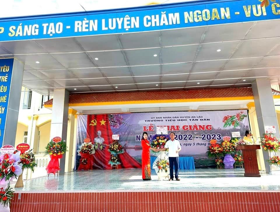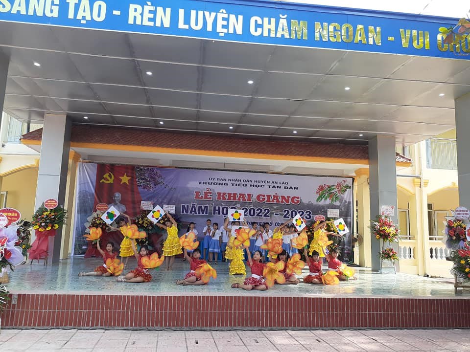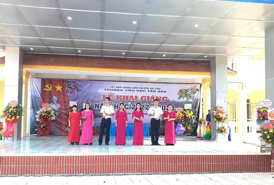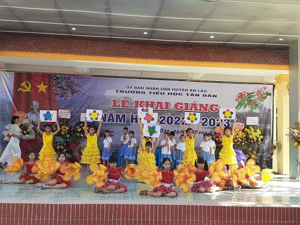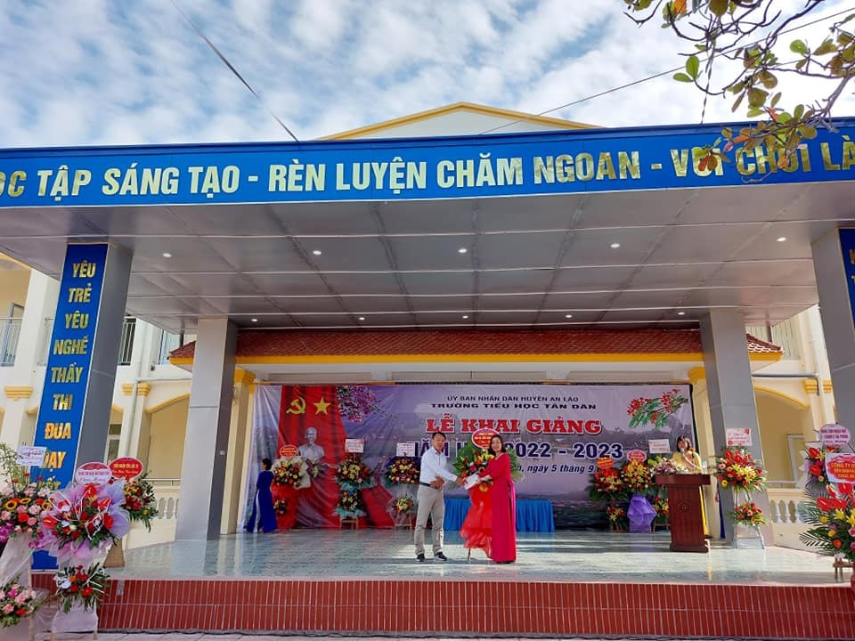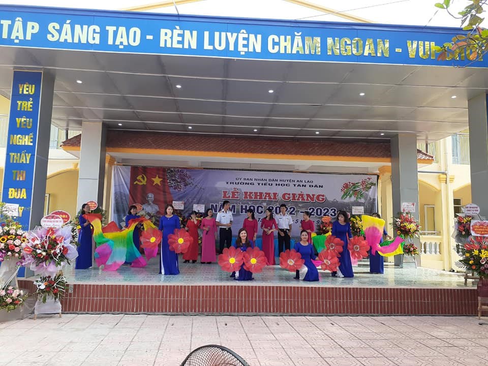 Hòa chung trong không khí vui tươi của hơn 22 triệu học sinh, sinh viên trên toàn quốc, sáng nay, ngày 5/9 trường Tiểu học Tân Dân đã long trọng tổ chức lễ khai giảng năm học mới 2022- 2023. Đến dự buổi lễ khai giảng hôm nay, nhà trường vinh dự đón tiếp các Đ/c lãnh đạo Đảng ủy, HĐND, UBND, UBMTTQ, các ban ngành đoàn thể, các đơn vị kết nghĩa, các đồng chí nguyên là giáo viên về hưu và ban đại diện hội phụ huynh học sinh cùng đội ngũ CBGVNV và toàn thể các em học sinh nhà trường. Lễ khai giảng năm học mới 2022 - 2023 diễn ra vô cùng trang trọng, ý nghĩa, tươi vui đối với thầy và trò nhà trường trong ngày đầu tựu trường.. Buổi khai giảng đã khép lại hi vọng rằng với sự quan tâm sâu sắc sự giúp đỡ của các cấp uỷ Đảng và chính quyền, các ban ngành đoàn thể. Sự phối hợp giúp đỡ của các bậc phụ huynh, sự giúp đỡ của các lực lượng xã hội trong các năm học vừa qua và trong các năm học tới, tập thể CBGVNV, HS trường Tiểu học Tân Dân sẽ phấn đấu hoàn thành xuất sắc nhiệm vụ năm học 2022- 2023