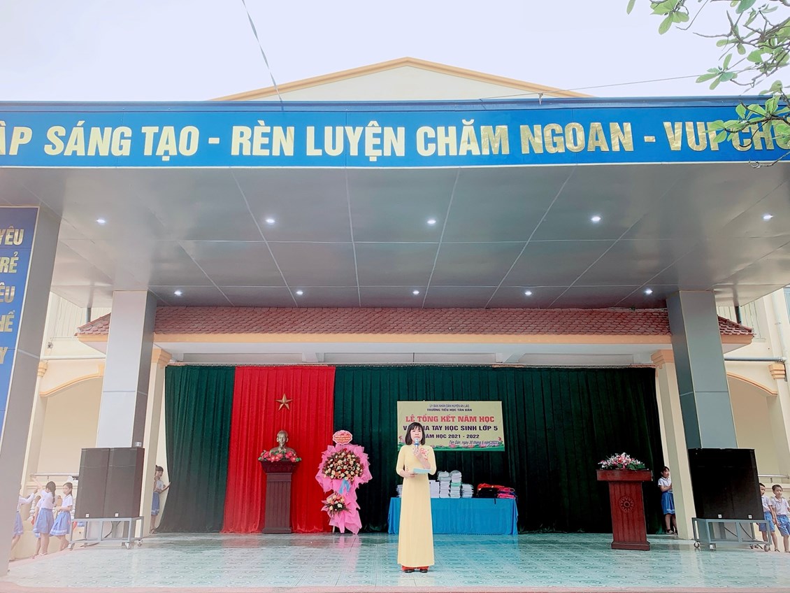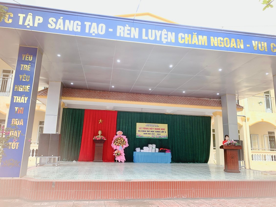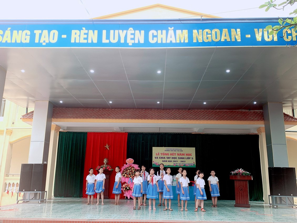 Hôm nay ngày 30 tháng 5 năm 2022 trường Tiểu học Tân Dân long trọng tổ chức Lễ Tổng kết và chia tay học sinh lớp 5 _ năm học 2021 – 2022. Chúc các thầy cô có kì nghỉ hè vui vẻ luôn luôn chăm lo đến sự nghiệp trồng người. Chúc các em học sinh chăm ngoan học giỏi xứng danh cháu ngoan Bác Hồ