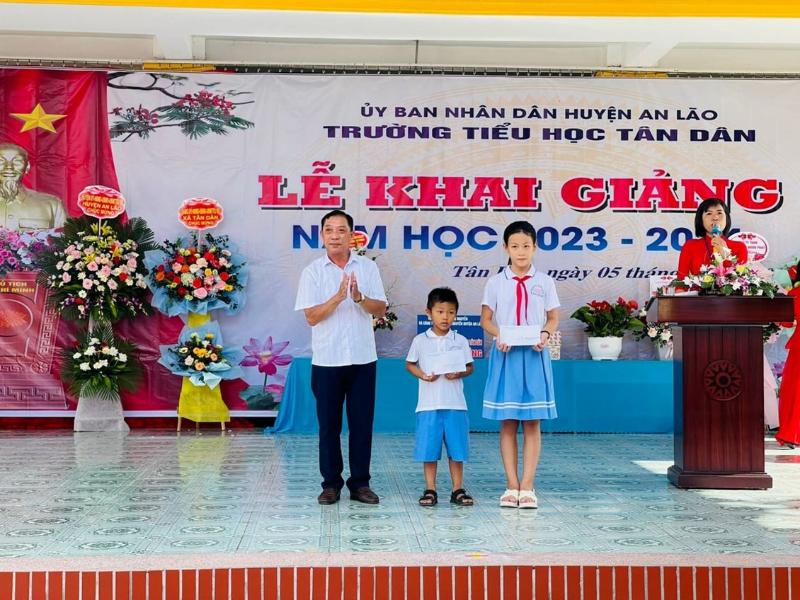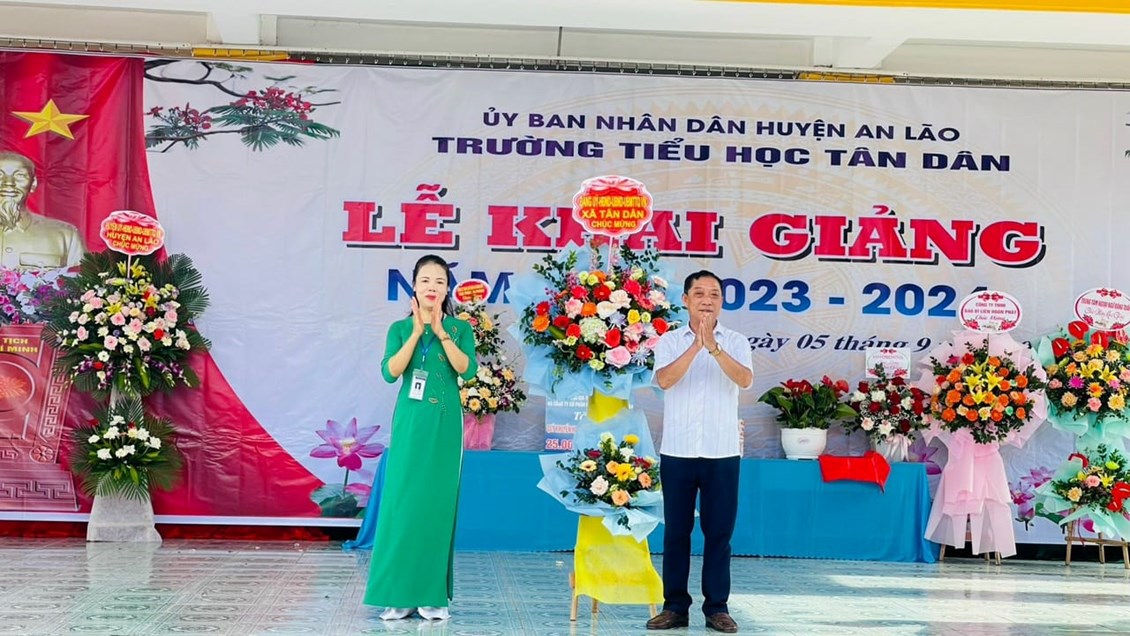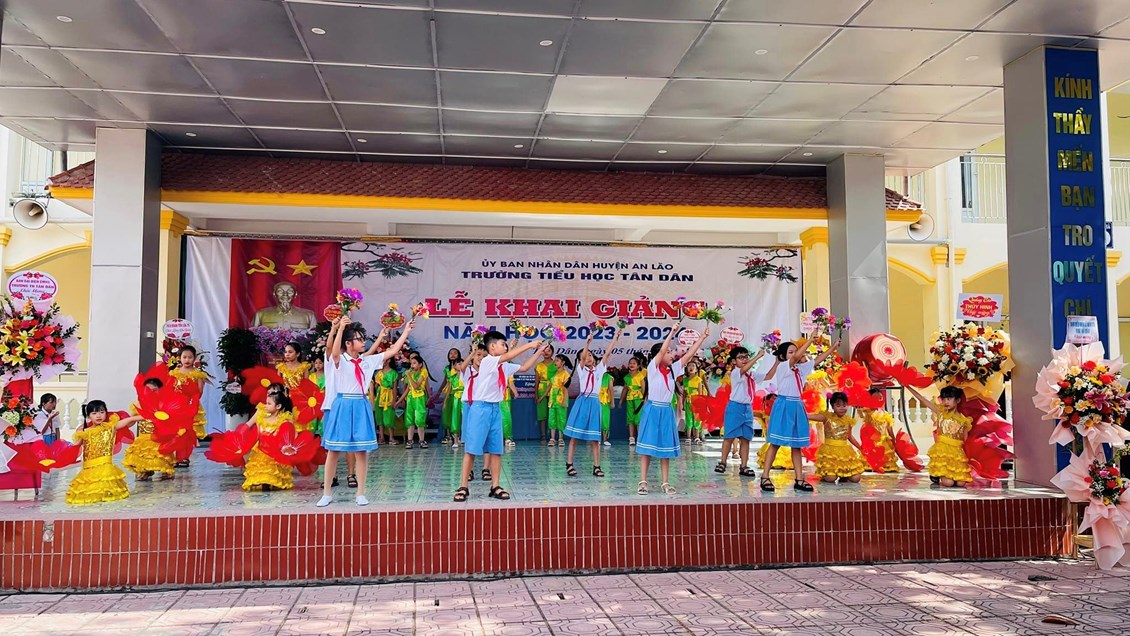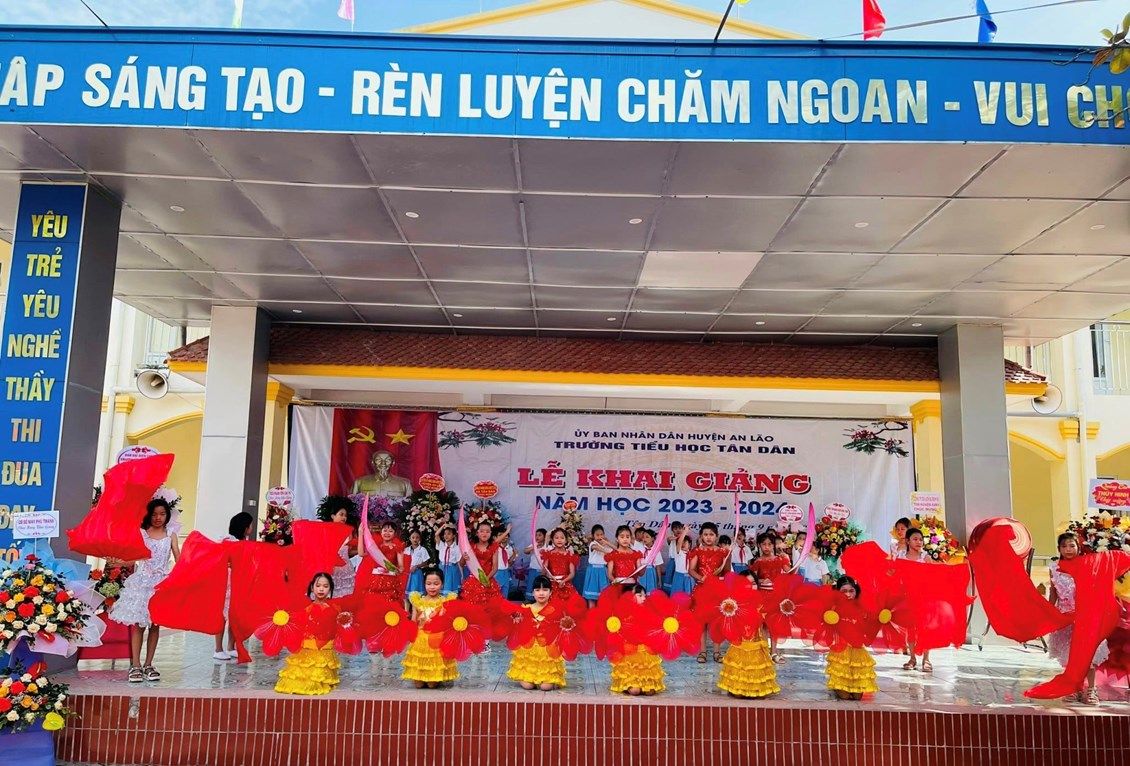 Hòa chung không khí vui tươi phấn khởi của mùa tựu trường trên cả nước. Sáng nay ngày mồng 5 tháng 9 năm 2023, thầy và trò trường Tiểu học Tân Dân vui mừng, hân hoan tổ chức lễ khai giảng năm học mới 2023 – 2024. Về dự lễ khai giảng hôm nay, thầy và trò nhà trường vui mừng được ông Ngô Văn Lâm- Huyện uỷ viên, Trưởng phòng Tư pháp huyện An Lão; các đồng chí đại diện lãnh đạo Đảng uỷ, HĐND,