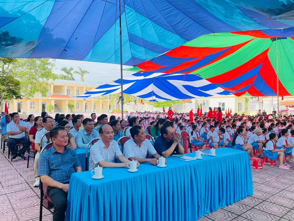 Trong diễn văn khai giảng năm học mới cô giáo Nguyễn Thị Oanh- Bí thư chi bộ- Hiệu trưởng nhà trường đã ghi nhận và biểu dương những thành tích mà thầy và trò nhà trường đạt được trong năm học 2022-2023, gửi lời cảm ơn sâu sắc tới các cấp lãnh đạo, các ban ngành đoàn thể địa phương và cha mẹ học sinh toàn trường.