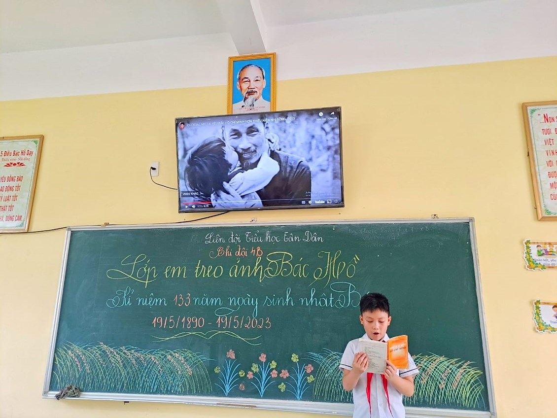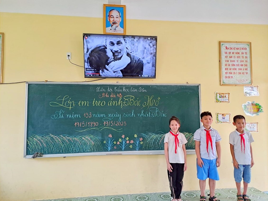 Bác đã đi xa nhưng hình ảnh Bác vẫn luôn in đậm trong mỗi người dân đất Việt Nam. Kỷ niệm 133 năm ngày sinh nhật Bác là dịp để thầy trò trường tiểu học Tân Dân bày tỏ tình cảm, lòng biết ơn sâu sắc tới Bác Hồ kính yêu.